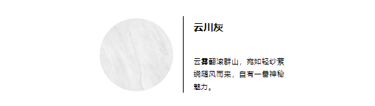 【云川灰】色如煙云縹緲,紋理豐富而深邃,恰似雨后的長白山,山色空濛,一明一暗間,碰撞出空靈與清冷的氣質(zhì)。