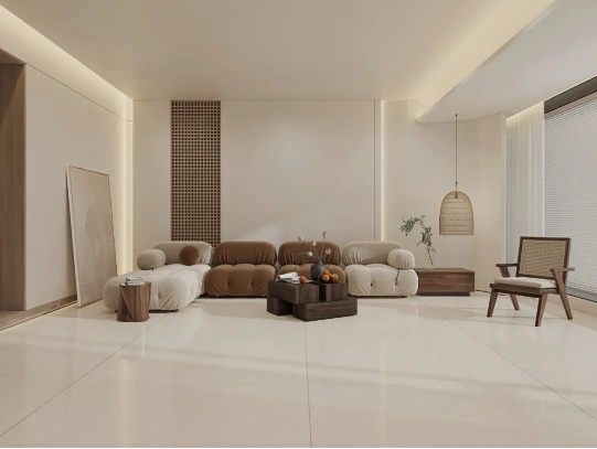 無論身處哪個(gè)季節(jié),暖色調(diào)瓷磚總能為家定下溫暖恬適的基調(diào)。塞納淺啡簡(jiǎn)潔明快的米色系搭配木質(zhì)家具元素,不僅組合出富有親和力的客廳空間,簡(jiǎn)約大氣的氛圍中還透露著悠閑自在的生活態(tài)度。